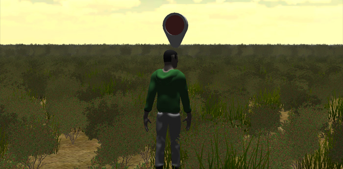 In the third person I added a 3D character so that the user can walk around the park. So in the virtual environment our designers in the team created the terrain and the character. In the park I added the 3D location annotations to let the use know that there is something there. If the user would walk towards it and if the user gets in range of the 3D annotation it will animate itself to disappear and a video would appear in front so the user can watch it. The video will be triggered if the character get's in range of the annotation. For this I used on trigger enter function.