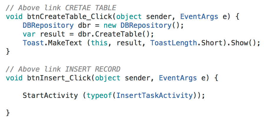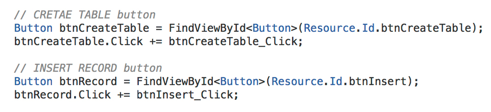 Going back to the main activity script, we have to add a command to each button "Add Table" and "Add Record".