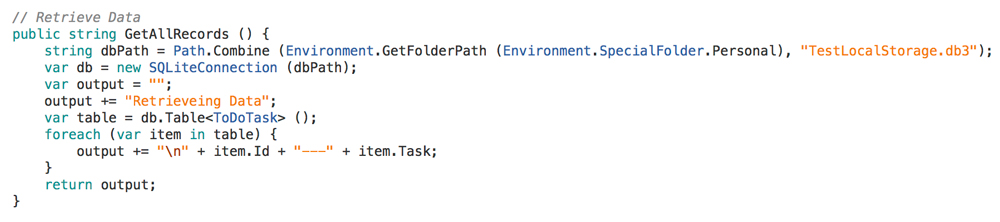 and retrieve data from my mobile's local storage. One of the biggest challenge with Xamarin was that