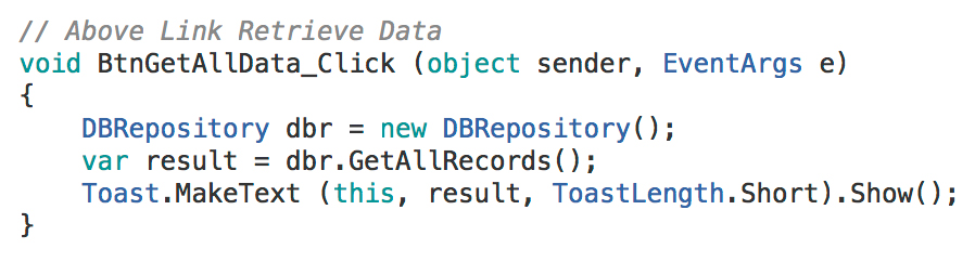 So I started playing around with Xamarin and started to learn how save and retrieve data from the
