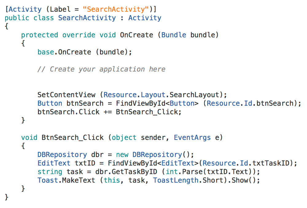 into the "DBRepository", which basically searched the database with the ID that was entered by