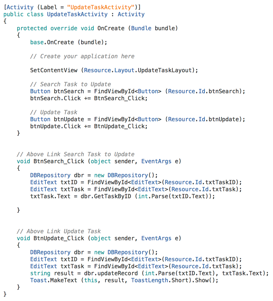 An update function was also needed to be added in the "DBRepository", so when the user taps "Update",