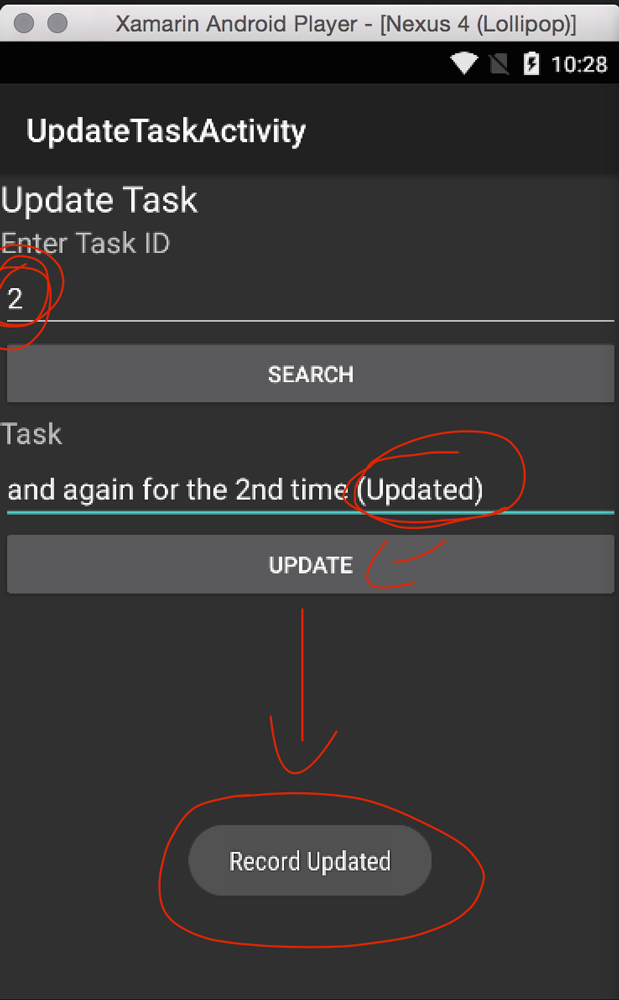 The app searched and displayed my second record. I successfully edited and updated my record. [Refer to Image 32, 33 & 34]