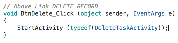 would like to delete and when they tapped on delete record, it would delete that record from the table.