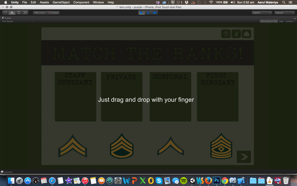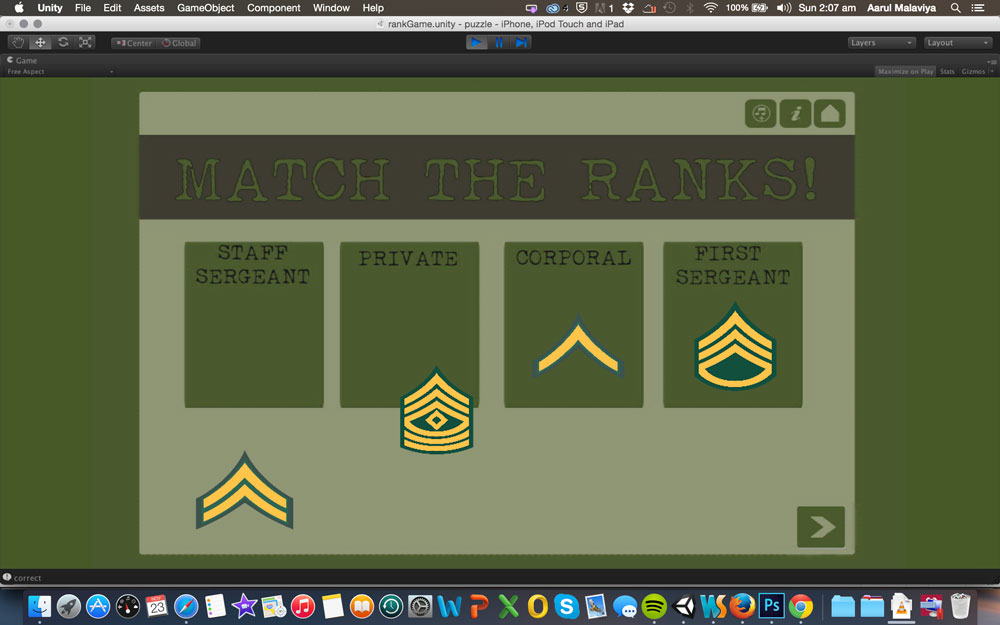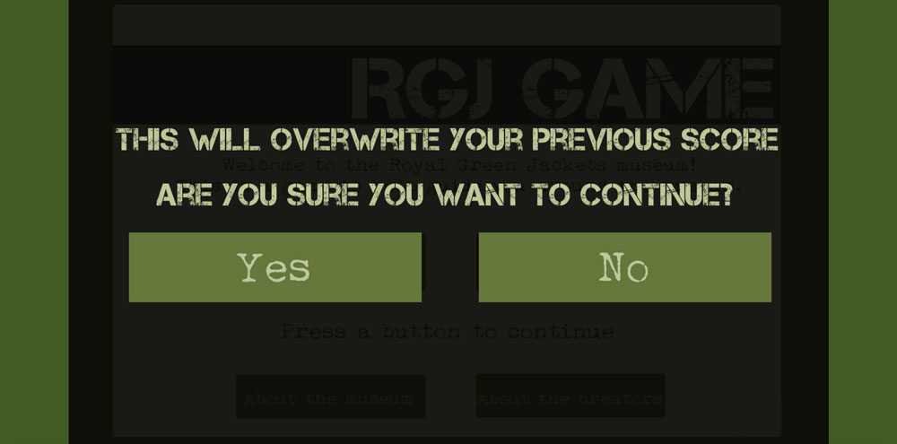 Firstly we called the app Royal Green Jackets Museum and not something else because firstly we thought that the museum name should be there plus this will help recognizing the app very easily if it was on the app store. The name was too long so we called it "RGJ Game" which stands for Royal Green Jackets.