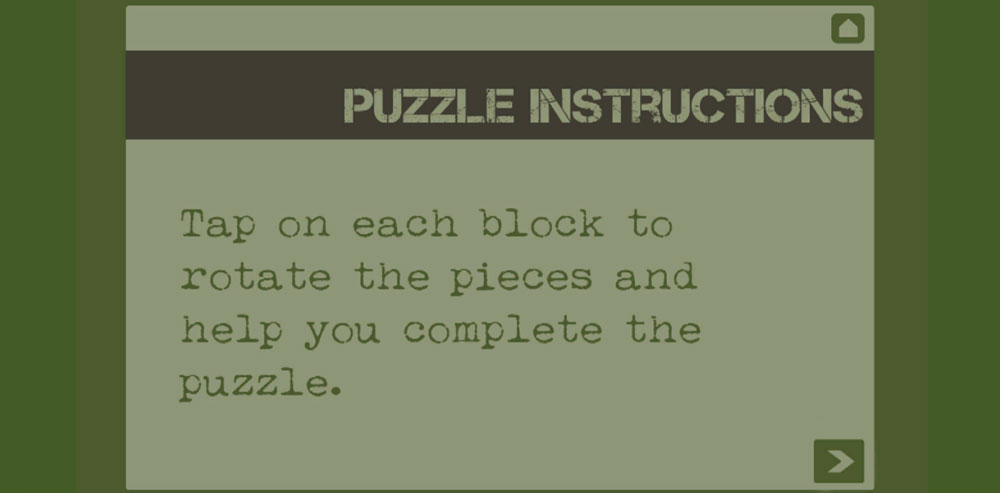 The puzzle game works with 2 scripts. 1 script that lets the image piece rotate 90 degrees and other script recognizes the rotation of the puzzle piece so that when the puzzle is complete the user is taken to next question.